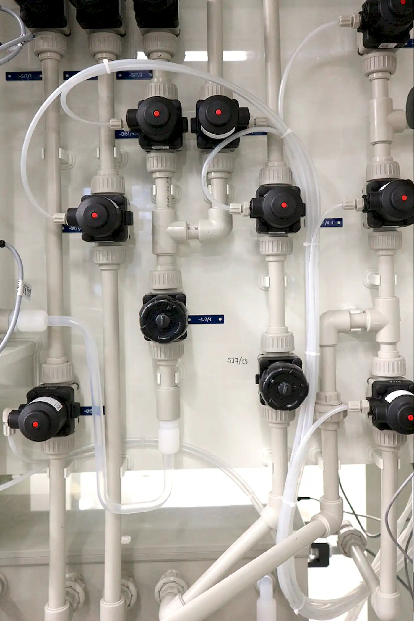 Zařízení slouží k ředění procesních chemikálií při výrobě polovodičů. Ředění probíhá v automatickém režimu deionizovanou vodou ve směšovací hydraulické smyčce dávkováním nastavených poměrů chemikálie a vody do směšovací nádrže. Naředěná chemikálie ve směšovací nádrži po definovaný čas cirkuluje, aby došlo k promíchání. Poté je naředěná dávka chemikálie přečerpána do zásobního tanku, kde je připravena k distribuci do návazných technologických zařízení.